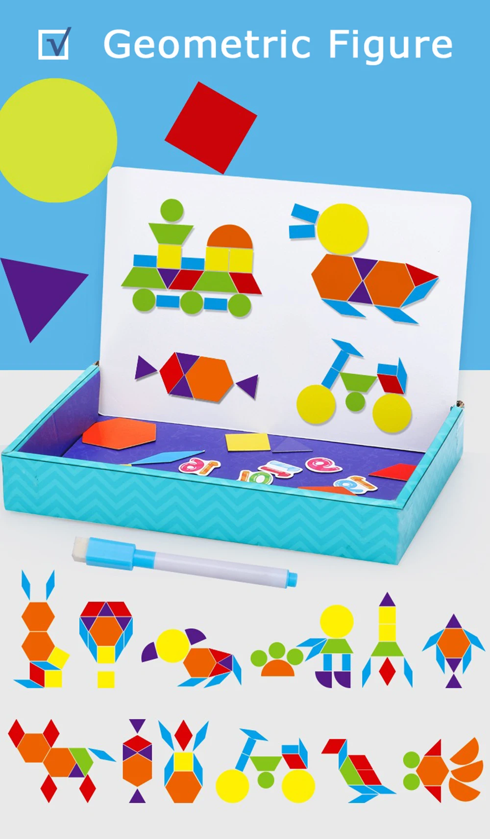 The magnetic pieces make it easy for children to place, move, and match shapes, helping them learn through touch, movement, and play.